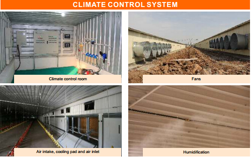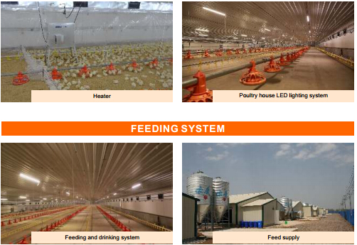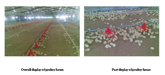 10)Temperature inside poultry house can be controlled coordinately by functions of fans, water cooling pads, heat isolating umbrella etc.