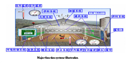 12)Equipped with "poultry house climate controller", real time supervise and fuzzy reasoning climate parameters of poultry house, controlling environmental adjusting mechanism automatically.